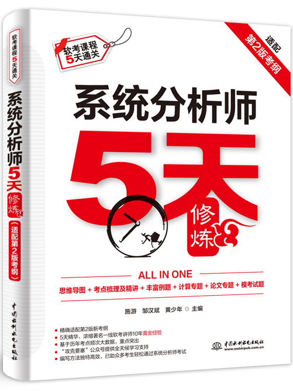 为了帮助备考系统分析师的考生,我们结合多年来辅导的心得,以历次培训经典的 5 天时间作为学习时序,精心编写了本书。具体的进度安排为:第1天学习计算机科学基础、计算机硬件基础知识、操作系统知识、数据库知识等内容,即第1章~第4章知识;第2天学习计算机网络与信息安全、多媒体基础、软件工程与系统开发基础等内容,即第5章~第7章知识;第3天学习面向对象、信息化基础、法律法规与标准化、数学知识等内容,即第8章~第11章知识;第4天学习典型软件系统开发、论文写作等案例与论文写作相关内容,即第12章~第13章知识;第5天进行学习总结,并结合书中的模拟试题进行模拟测试。